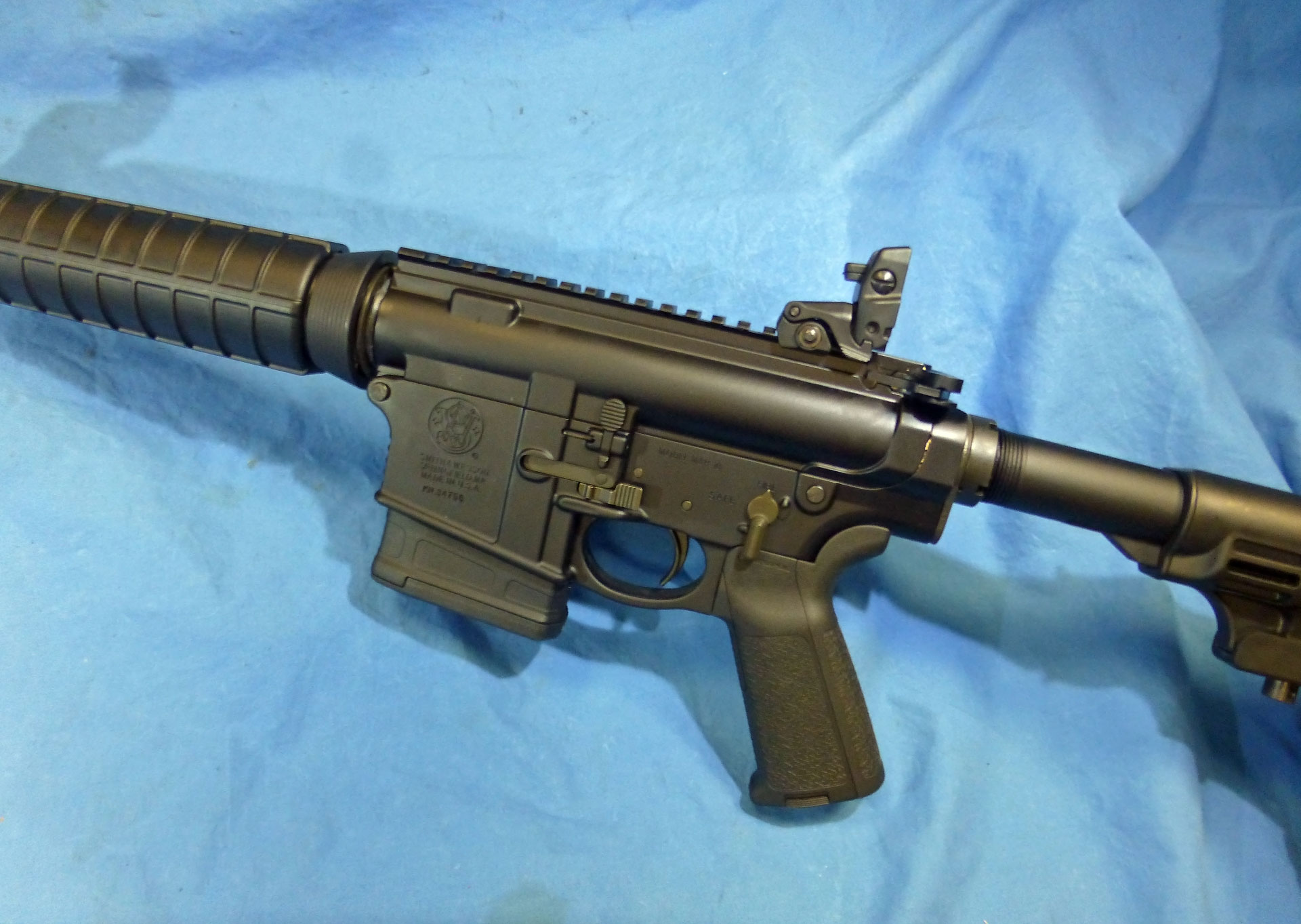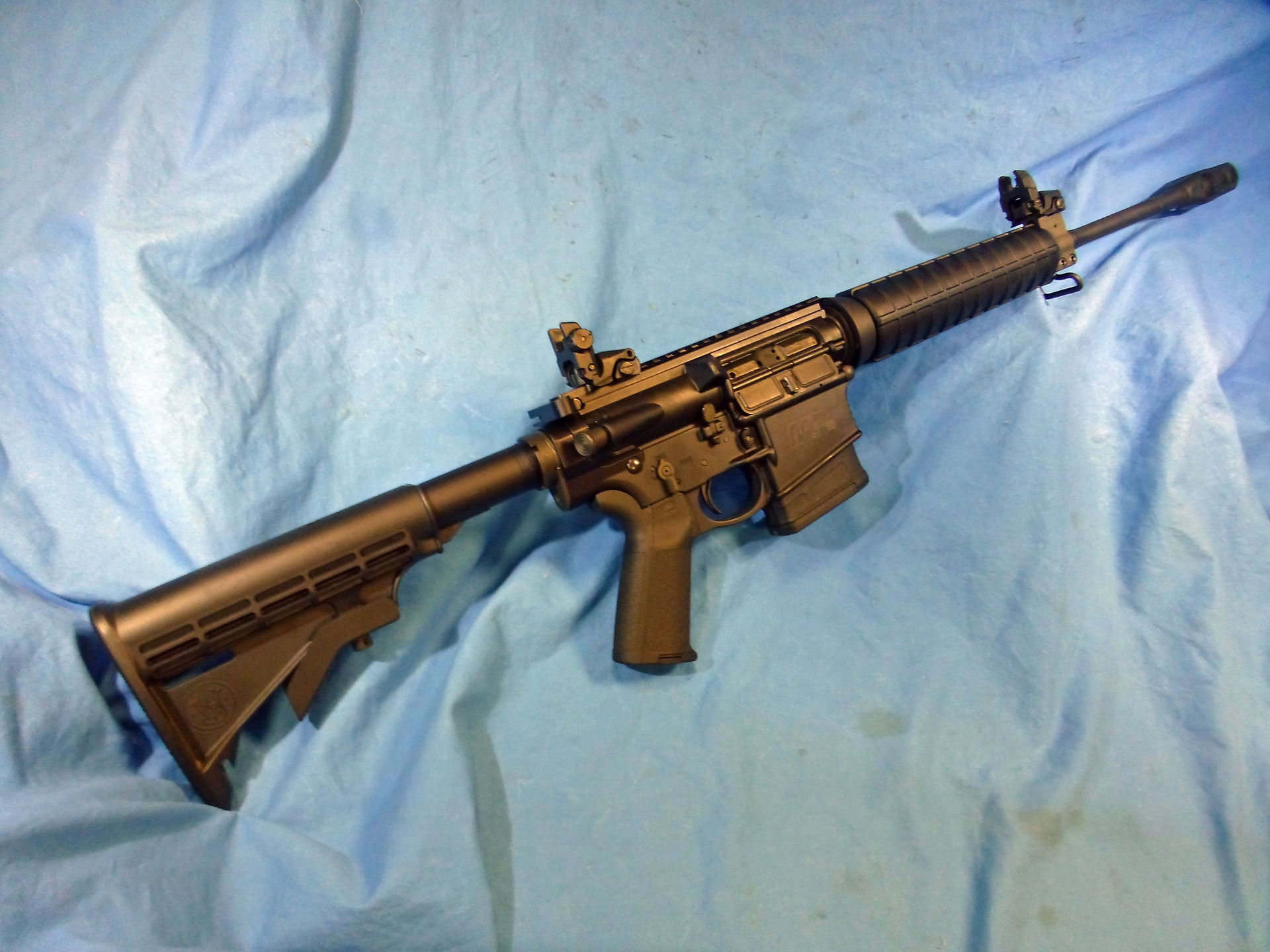 Carabine Smith & Wesson M&P10, cal. 308Win, visée Magpul, comp. M11 + cache flamme d’origine, inclus 2 magasins 20c. très bon état. mp